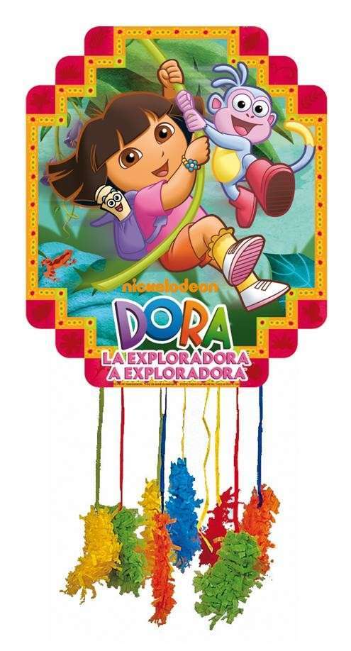 Es sabido que el momento de la piñata es especial en cualquier cumpleaños. ¡ Esta piñata es la mas grande del personaje de dibujos animados Dora la Exploradora! Es de cartón y es muy facil rellenar. Mide 55 x 45 cm.